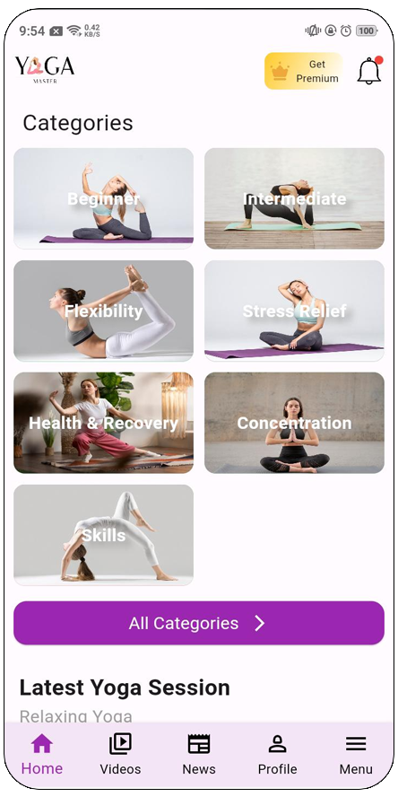 Yoga Master မှယောဂကျင့်စဉ်များသည် လူတိုင်းကို အဆင့်တိုင်းအတွက် သင့်လျော်သော လေ့ကျင့်နည်းအမျိုးမျိုးဖြင့် လေ့လာနိုင်စေပြီး လက်တွေ့ အကောင်အထည်ဖော်နိုင်စေပါသည်